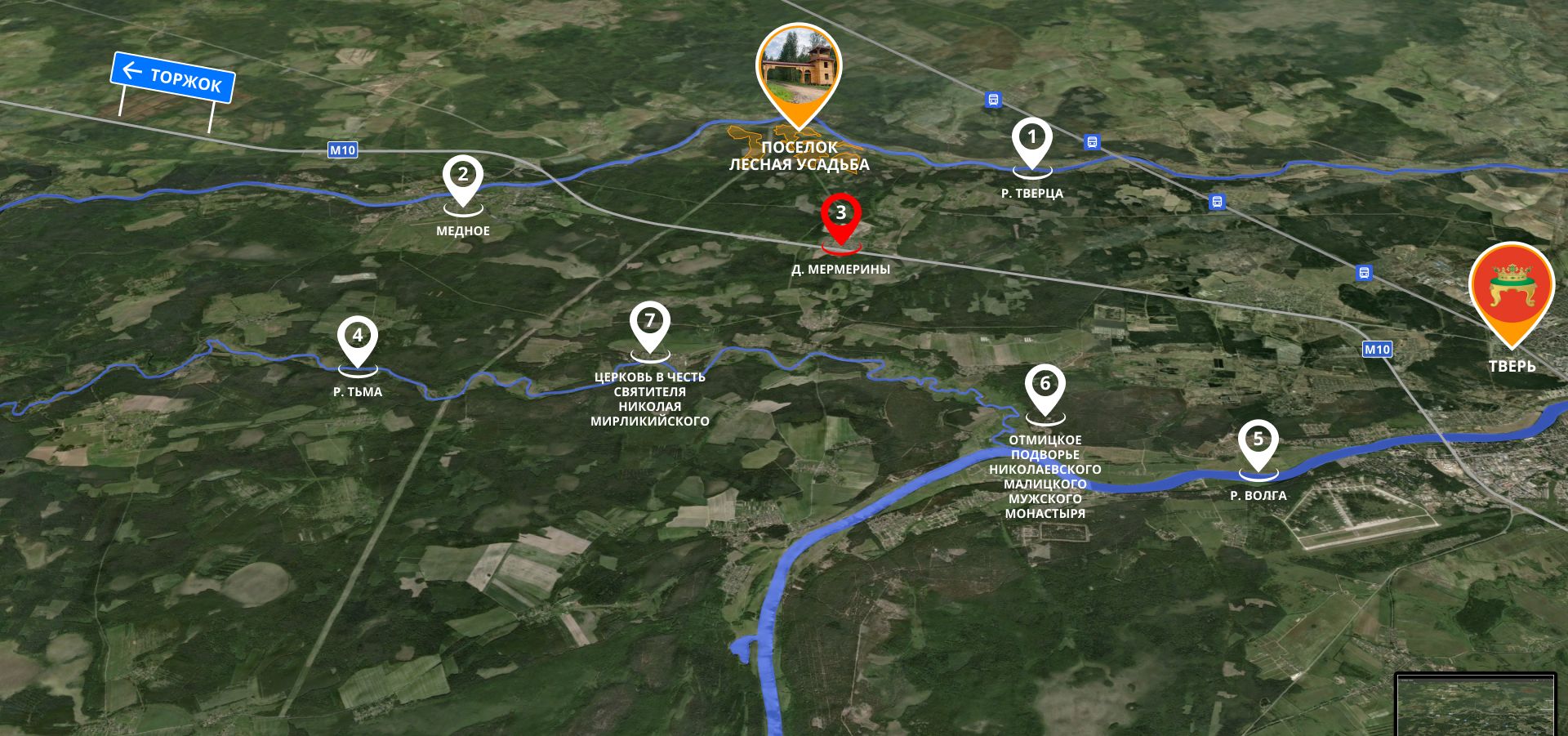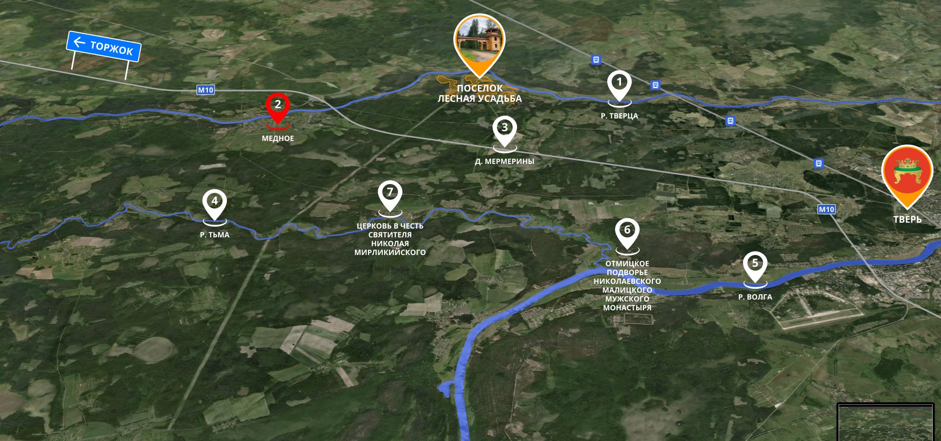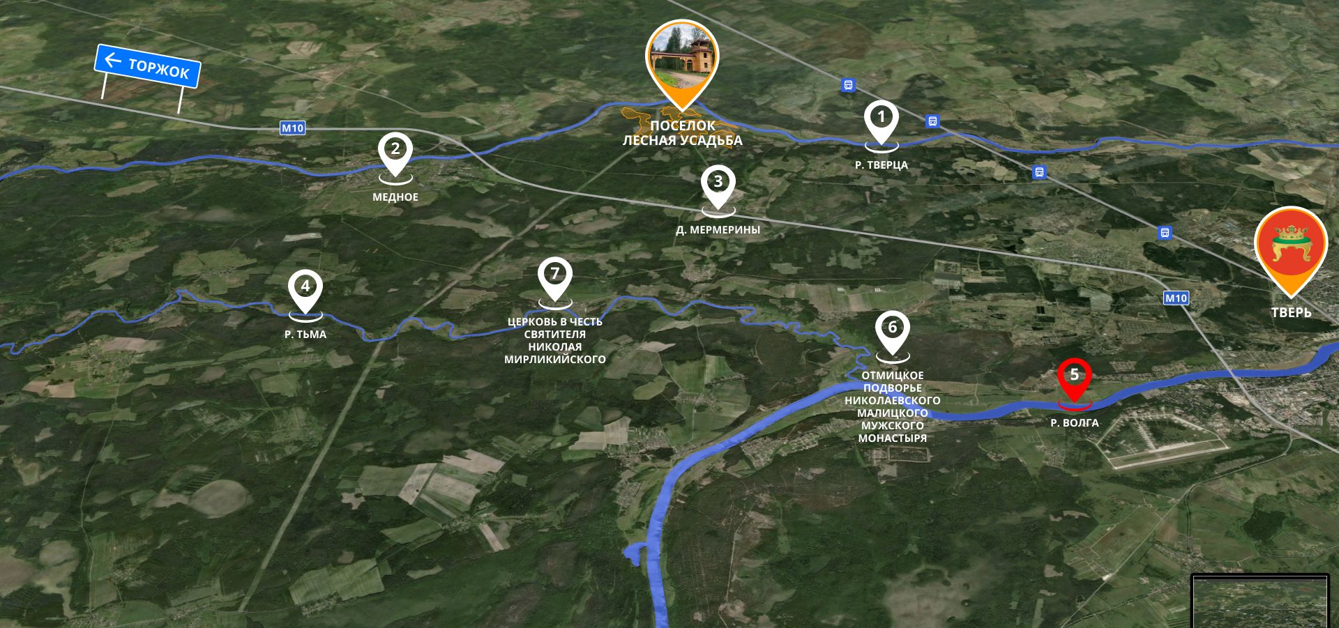 «Лесная усадьба на реке Тверца» привлекает удачным расположением и транспортной доступностью. До Твери отсюда можно добраться всего за полчаса по трассе Е-105 (М-10) или через ш. Петербургское. Ближайшая к поселку железнодорожная станция Санаторий также находится в получасе езды на авто.