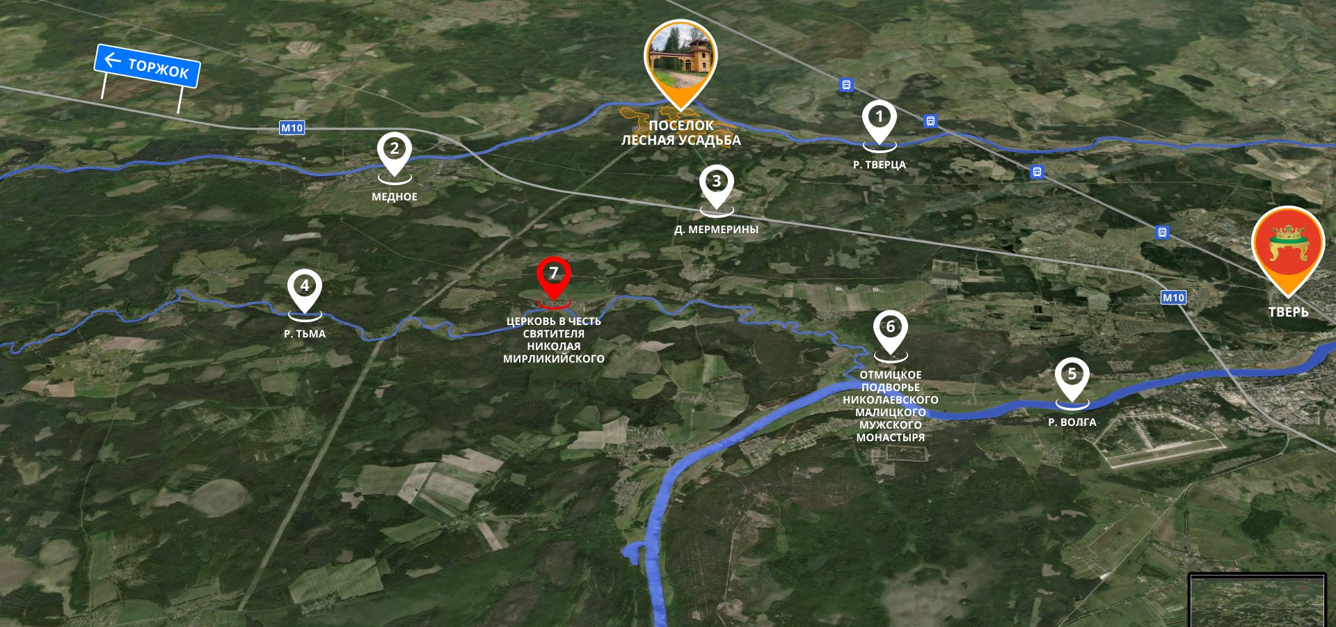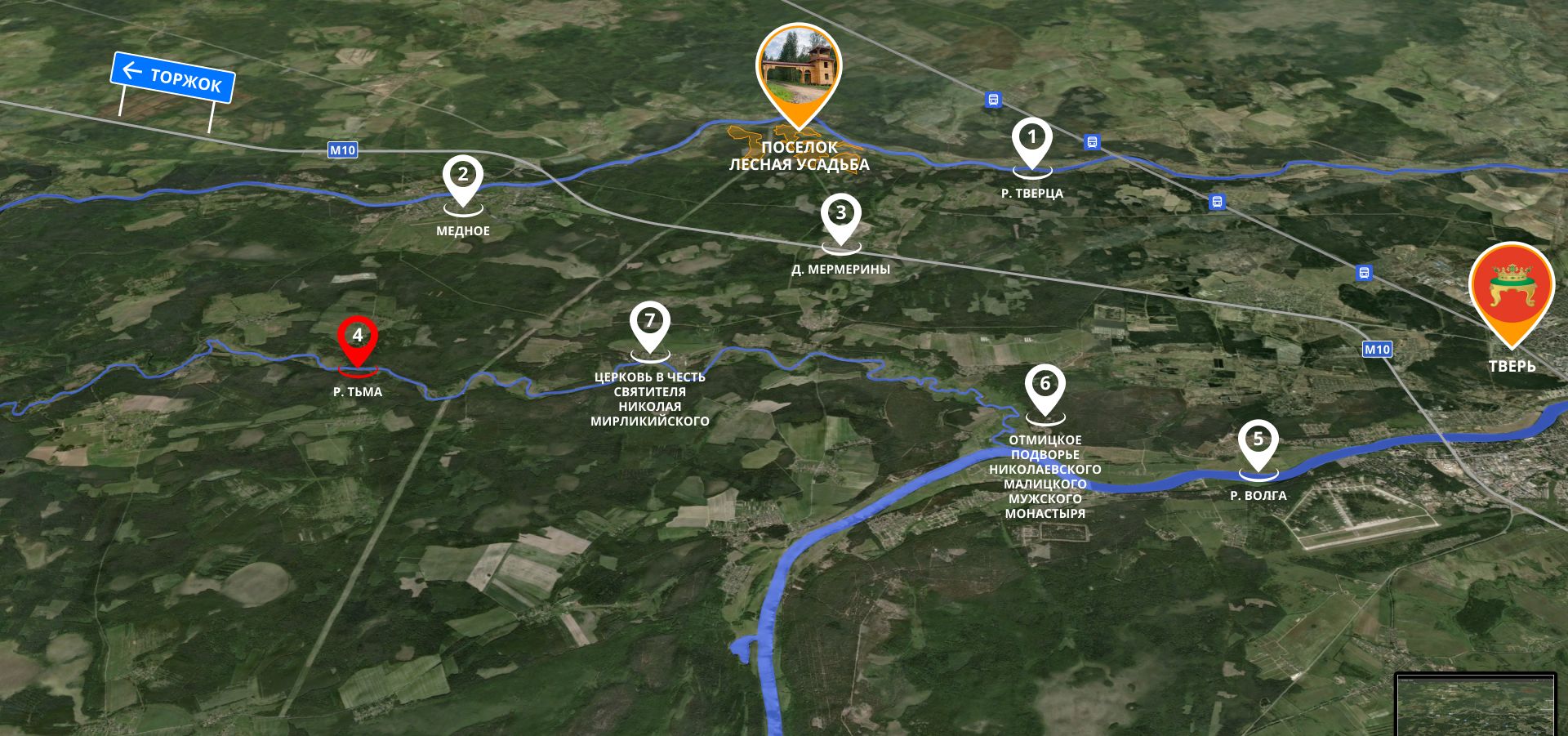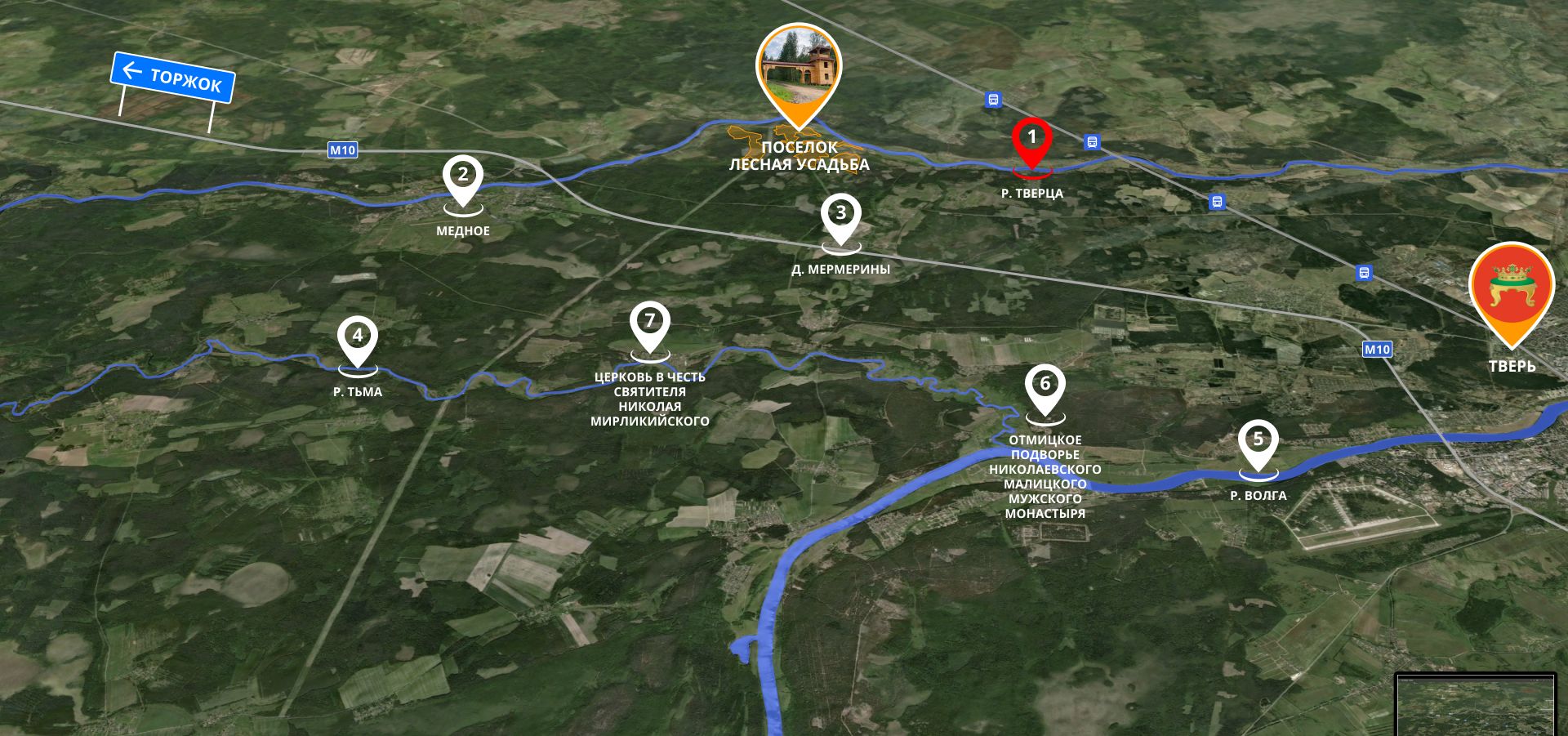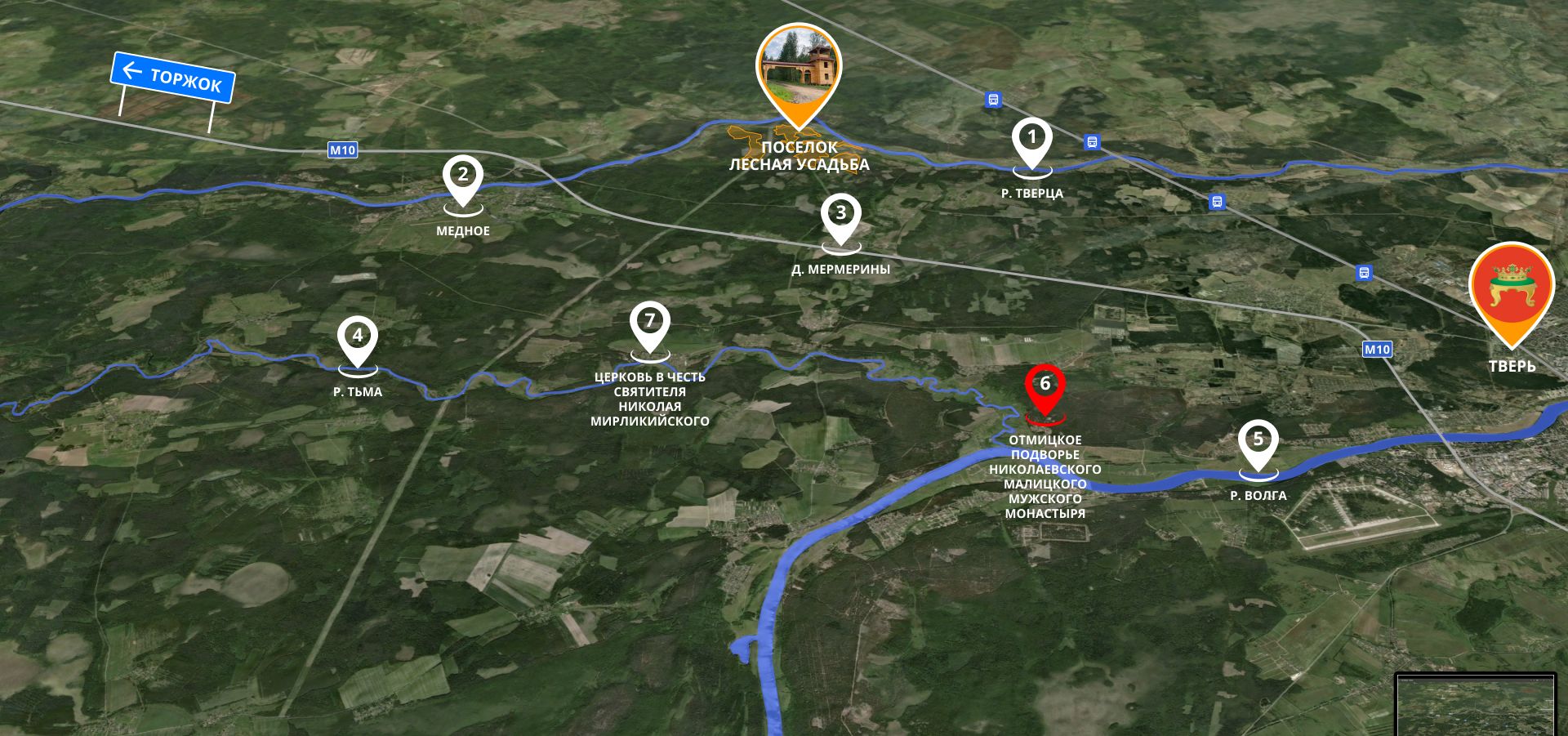 «Лесная усадьба на реке Тверца» привлекает удачным расположением и транспортной доступностью. До Твери отсюда можно добраться всего за полчаса по трассе Е-105 (М-10) или через ш. Петербургское. Ближайшая к поселку железнодорожная станция Санаторий также находится в получасе езды на авто.